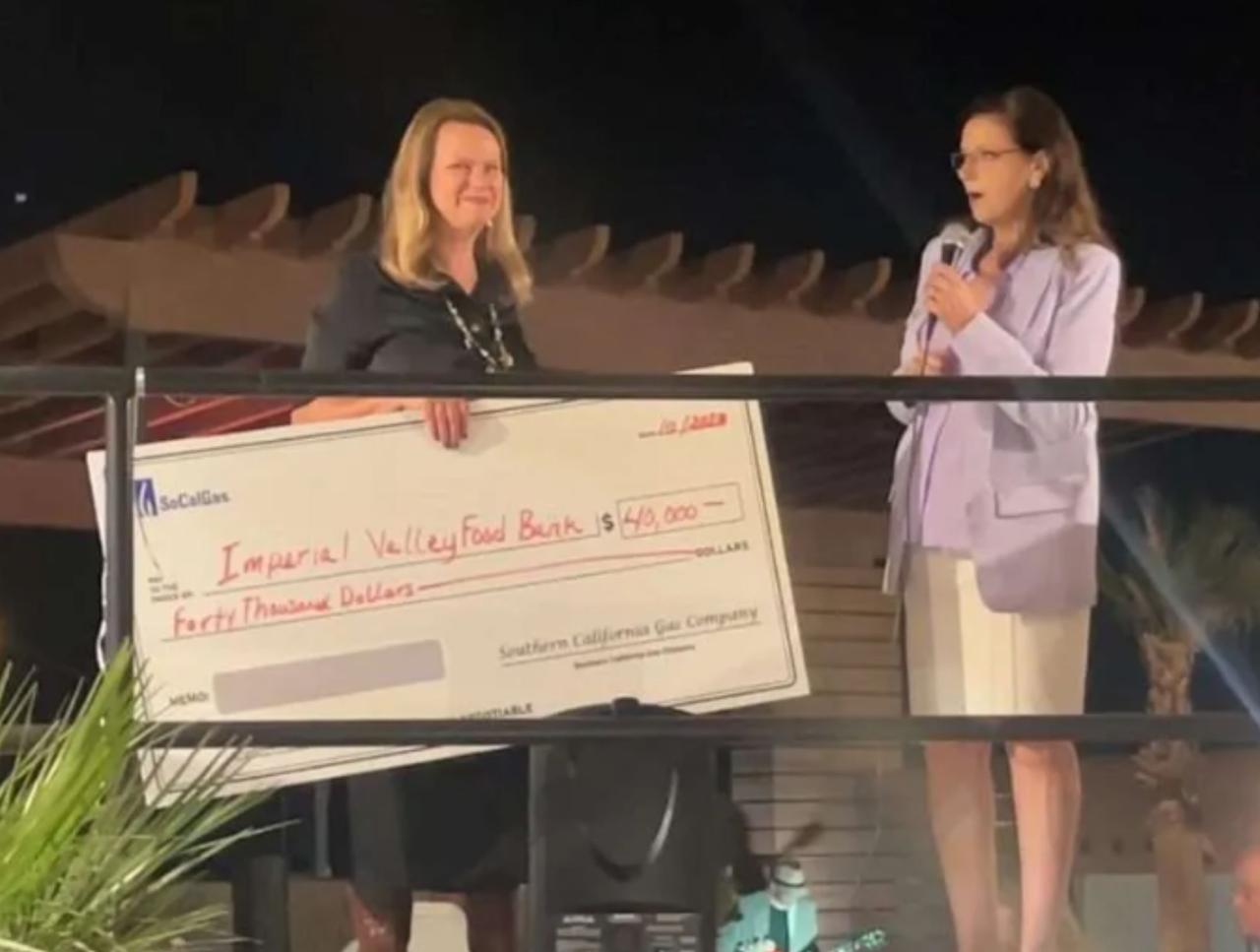 The Food Bank’s hard work was recognized Thursday evening by way of a large donation from the Southern California Gas Co. That giving community Abatti mentioned was present for this generous display of support. Deborah McGary, public affairs manager for SoCalGas, met with Griffen on stage and proudly handed over a $40,000 ceremonial check.