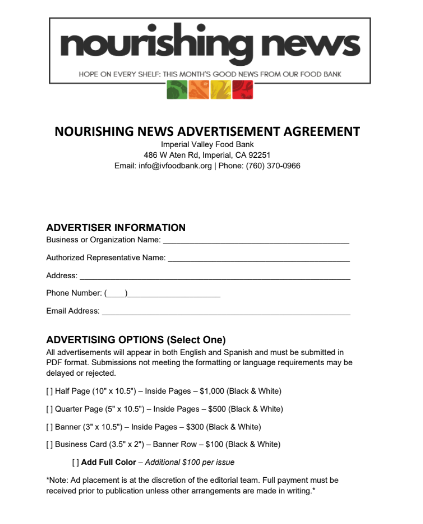 If you are interested in placing an advertisement in Nourishing News, click below.